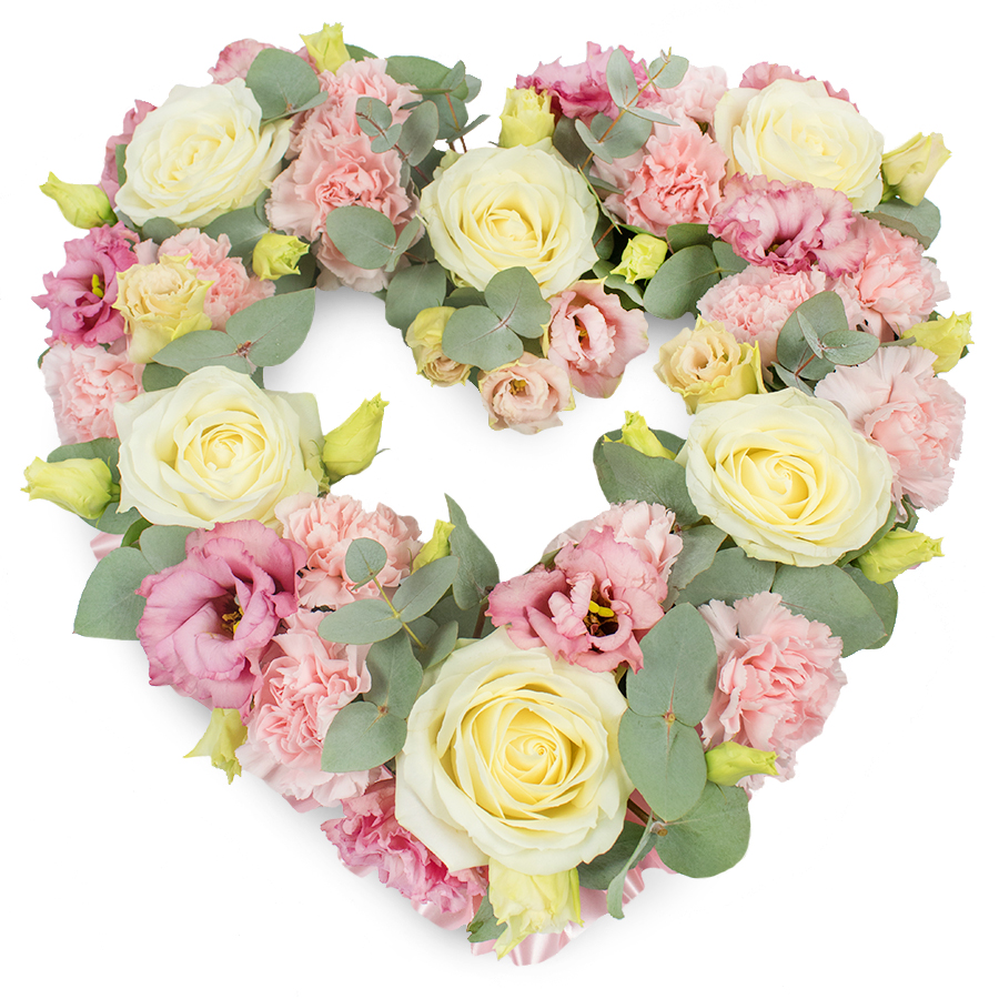 Perfect for funerals, memorials and celebrations of life, this open heart design symbolises eternal love and a lasting bond. The gentle white and pink colour palette creates a comforting, peaceful display that stands out with subtle sophistication. Expertly arranged by our skilled florists, each tribute is made fresh to order using high-quality blooms.